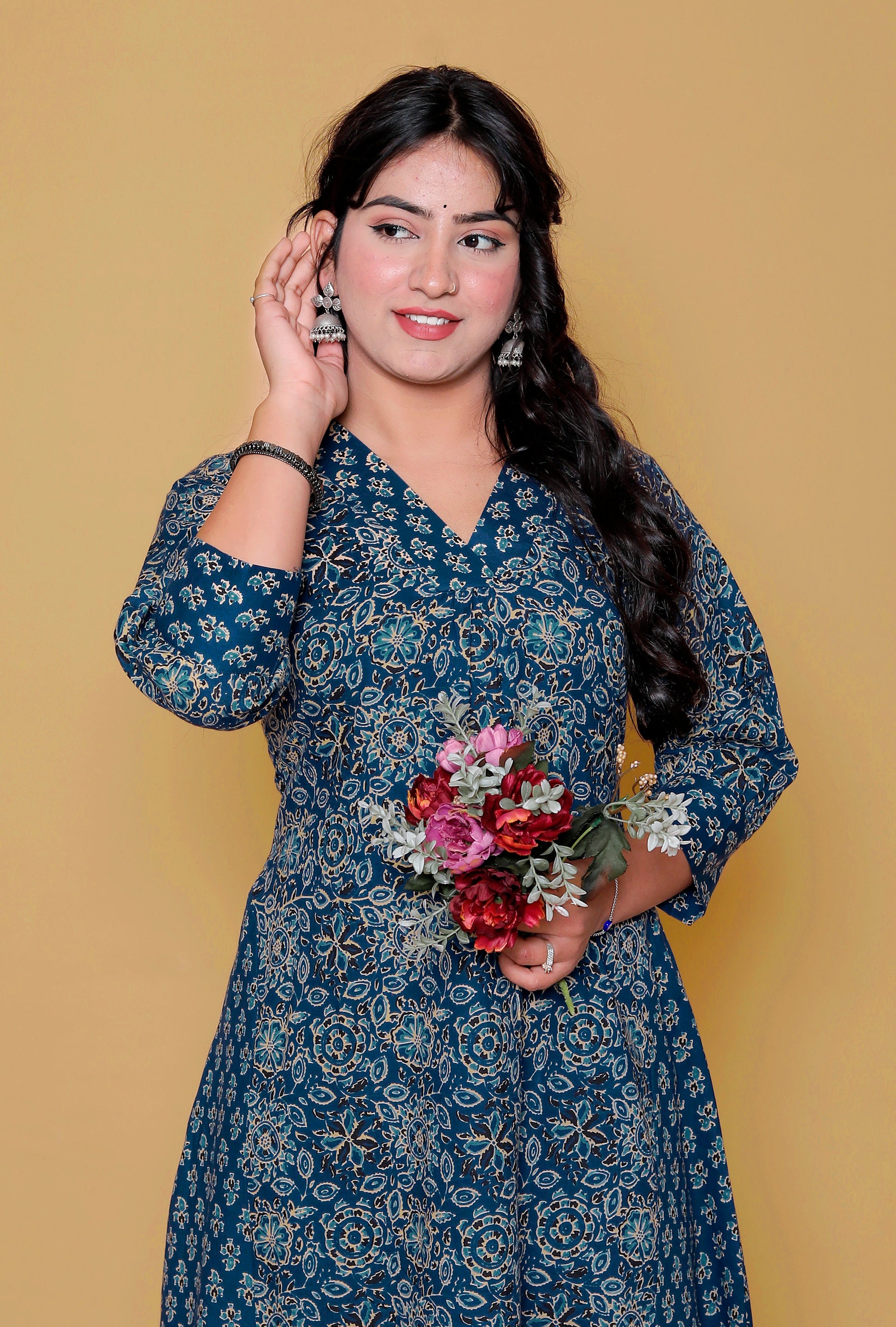 Elevate your ethnic wardrobe with the Neelaya Kali Print Co-Ord Set, designed to blend traditional charm with contemporary elegance. Featuring a flattering V-neck kurta adorned with an all-over kali-inspired ethnic print, this set flows into a graceful A-line silhouette that offers both comfort and style. The coordinated straight-fit bottoms complete the look, making it perfect for everyday wear, festive gatherings, or work-ready ethnic styling.